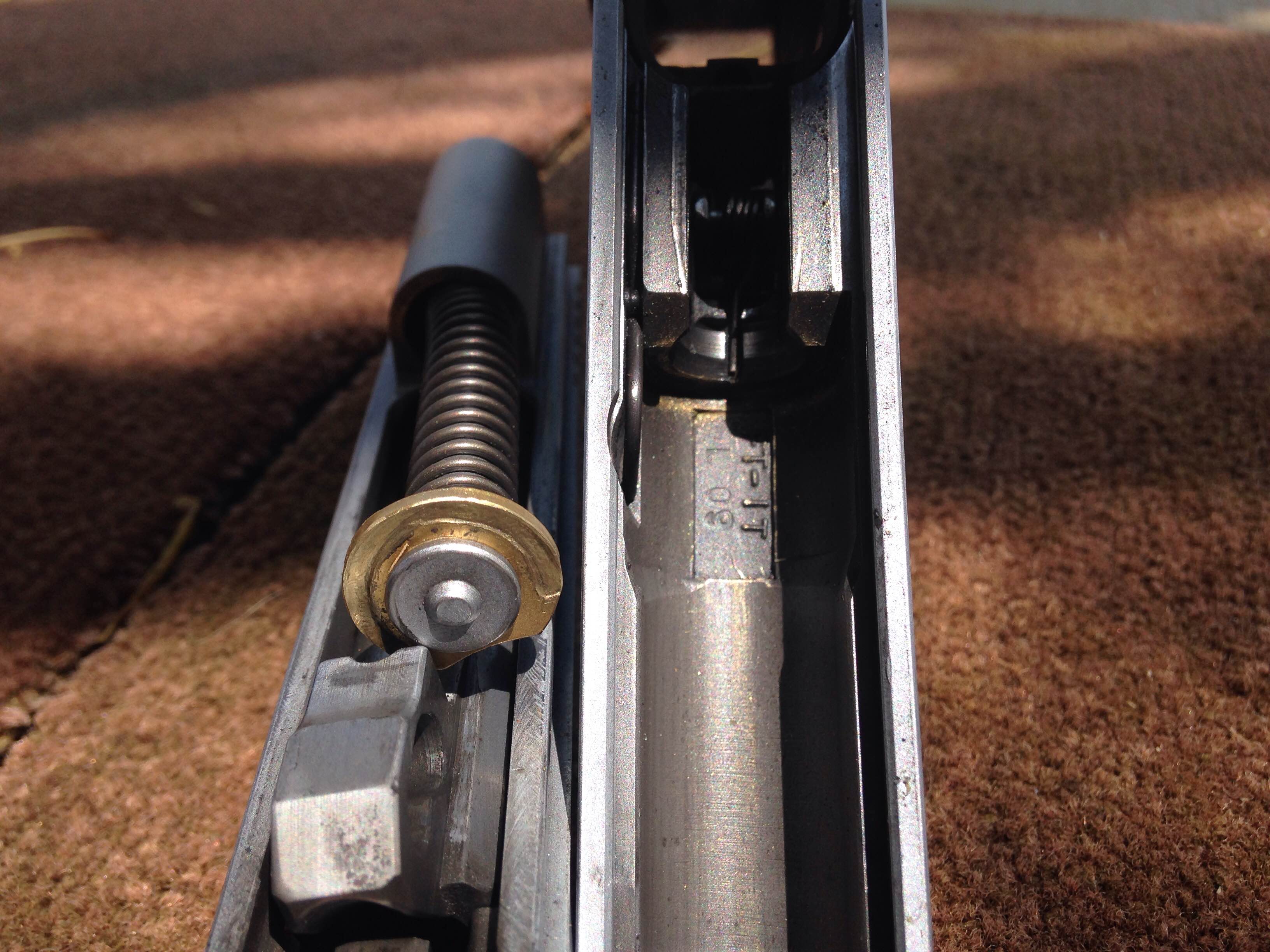 With regards to the FTFs, I installed a shock buffer in the hopes that it would reduce the force of the slide recoiling and it seems to that at the expense of FTFs. Here's what the shock buffer looks after 90 rounds.