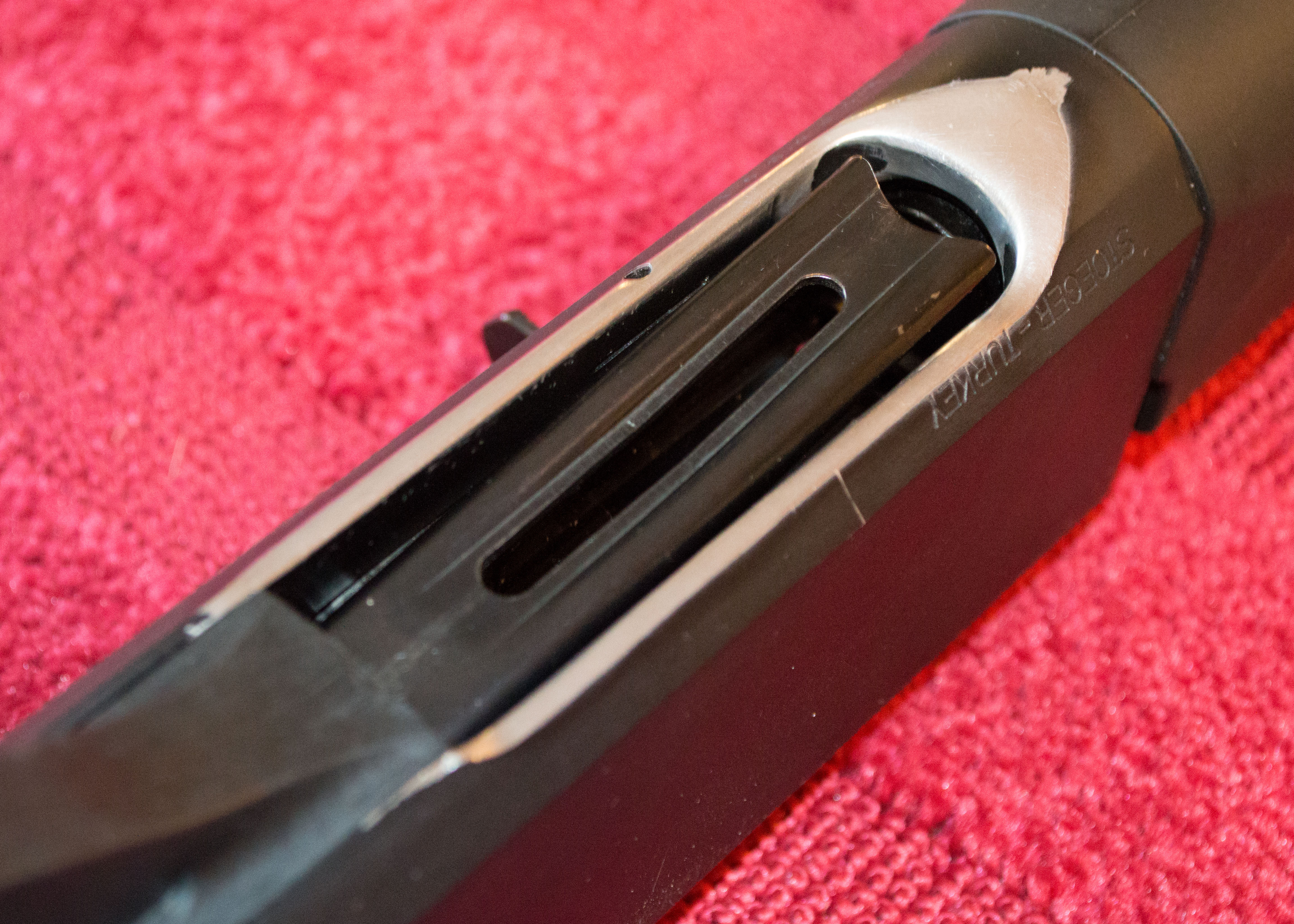 - Don't use masking tape to mark off the area to be filed. You can see a long scratch mark where I pulled back too far and cut into the receiver. Use electrical tape or something stronger than masking tape.
